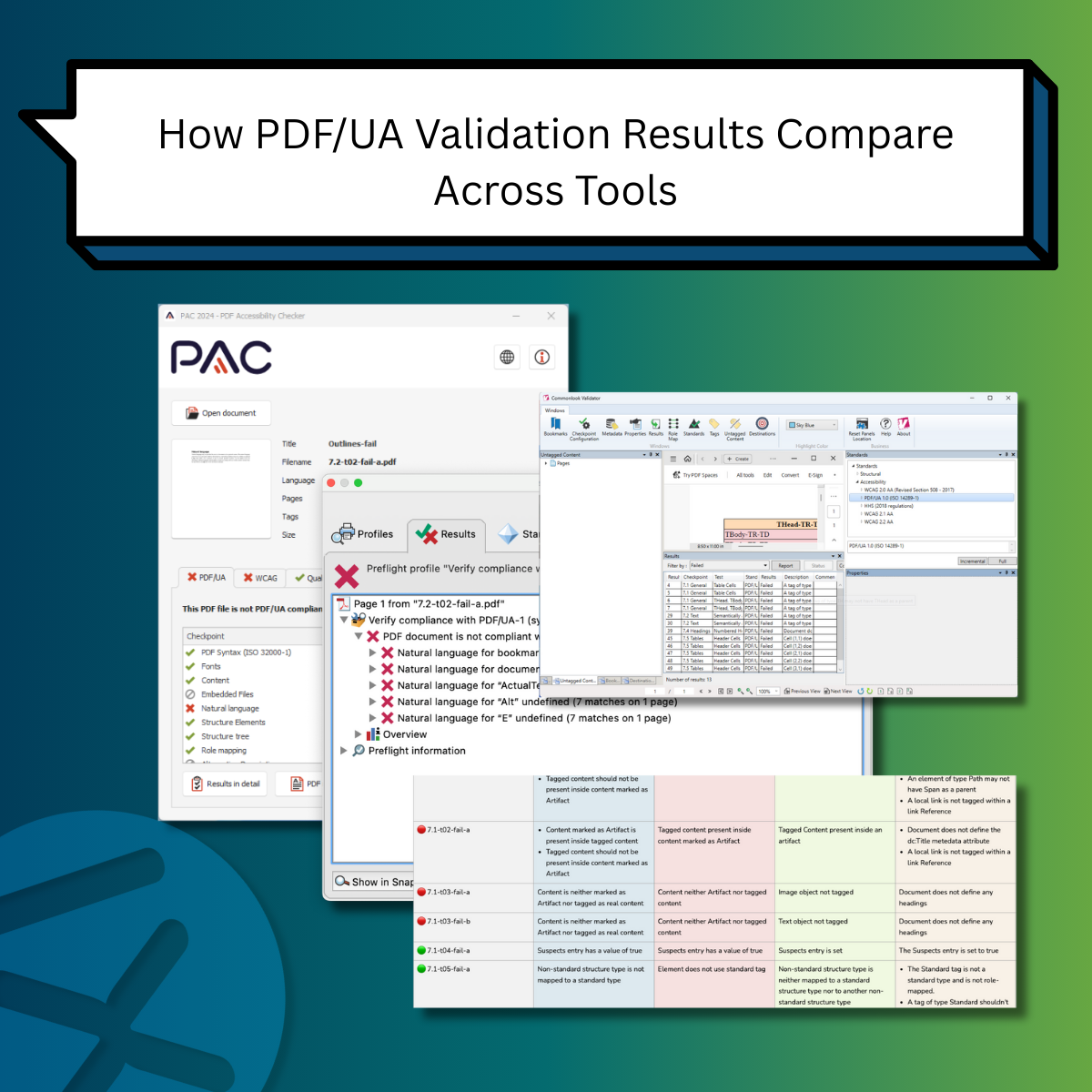 We analyzed PDF/UA-1 validation results across multiple commonly used tools using 155 reference files. This article shares key observations to help practitioners better interpret validation outcomes.