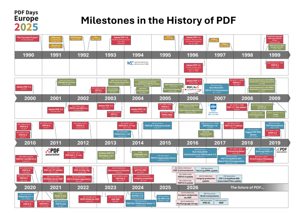 Download Peter Wyatt’s Milestones in the History of PDF poster at PDF Days Europe 2025.
