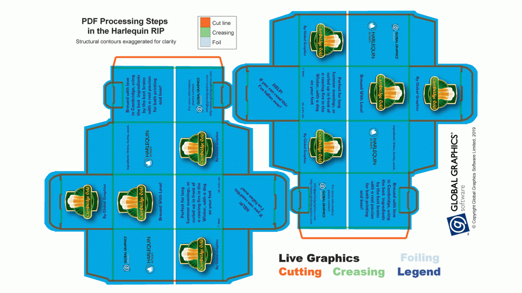 „Im Hinblick auf unsere eigene Produktentwicklung unterstützen die Harlequin RIPs von Global Graphics die neue Norm ab Version 12.1, die wir im Mai dieses Jahres angekündigt haben. Ich bin sehr stolz darauf, dass Harlequin so konfiguriert werden kann, dass jeder PDF-Verarbeitungsschritt einzeln oder „alles, was sich nicht in einem Verarbeitungsschritt befindet“ ein- oder ausgeschaltet werden kann. Das bedeutet, dass Sie die Grafiken ohne Schnitt- und Falzlinien drucken oder Live-Grafiken ausschalten und die Datei in ein Vektorgrafikformat exportieren können, wenn Sie Schneideeinrichtungen und andere Finishing-Ausrüstung nutzen.“