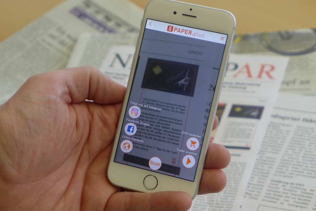 Ob Zeitungen, Zeitschriften, Poster oder Flyer: Überall, wo das PAPER.plus-Logo zu finden ist, erhalten Leser zusätzliche Angebote eingeblendet. Dazu müssen sie mit ihrem Smartphone oder Tablet lediglich das Motiv scannen. Neben Funktion wie dem direkten Aufruf von Webseiten und Shops, führen aufbereitete Motive in die Welt der Augmented Reality (erweiterte Realität) mit Einblendungen von Videos, 3D-Modellen und anderen Effekten.