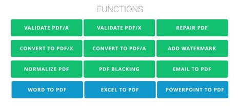 The solution’s drag-and-drop user interface makes it extremely high-performance and easy to use. Users drag their documents onto a button designed for a specific function. This can be converting an Office file to PDF, PDF/X or PDF/A, or validating PDF/X and PDF/A files. PDF/UA validation (for universal accessibility) also represents a possible use case. Documents can also be simultaneously prepared and optimized on the server, with the result accessed through a download link.